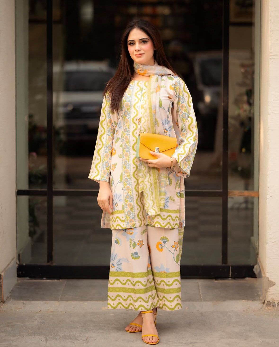 "Discover the Elegance: New Arrival - 3PCS Slub cambric Lawn Fabric by Fatima Clothes